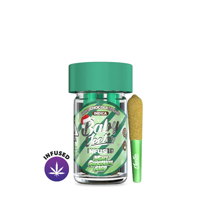 Mint Chocolate Chip Baby Jeeter Holiday Edition: Five .5g Joints 2.5g | Indica | 33.18% THC Indoor Grown Infused with Distillate Oil & Kief